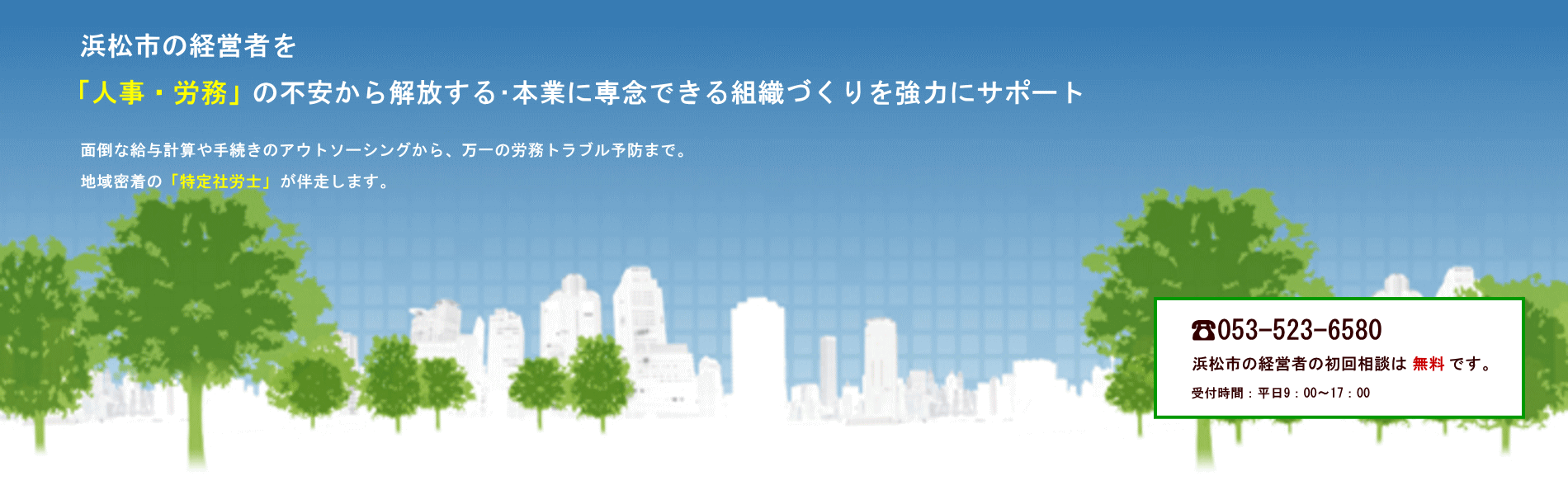 当事務所は、浜松市を中心に活動する社会保険労務士事務所です。